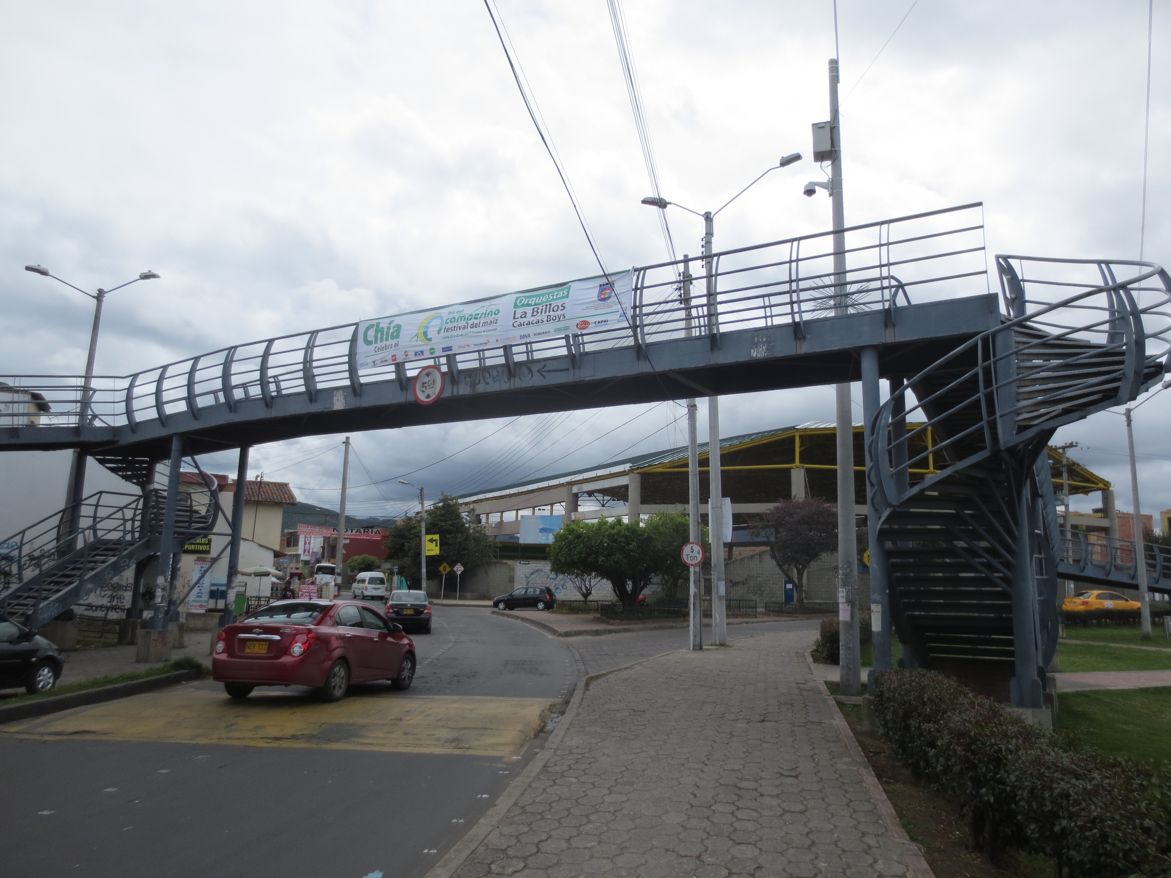 I have seen the bridge. In Chía, traffic on the major artery is preposterously congested. For pedestrians, crossing that main street—which one might well have to do a couple times a day—is no small feat.