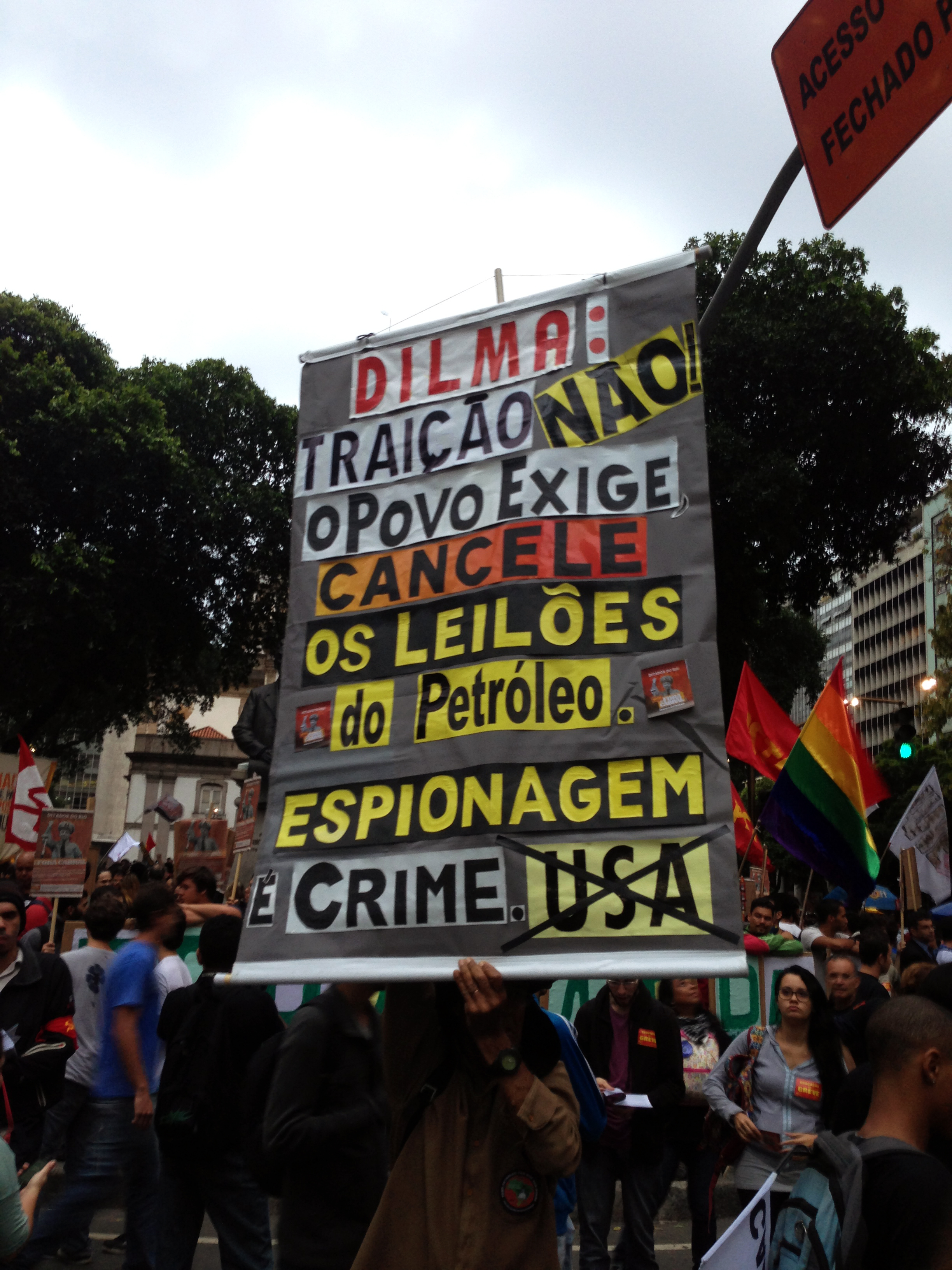 In contrast to previous protests, especially those in June, the crowd waved many flags of political parties and organized civil society groups. The rule of “Sem partido” (“without party”) has lost force since the protests started.