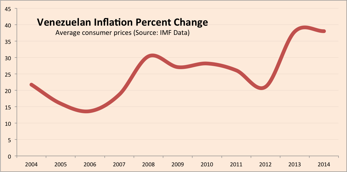 The IMF has Venezuelan inflation topping out at 40 percent. And that may be a conservative figure—the Financial Times has it at 57 percent; The Economist at 56.