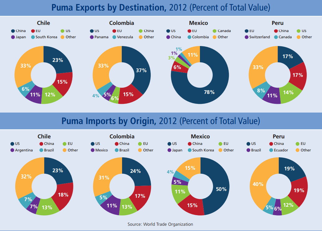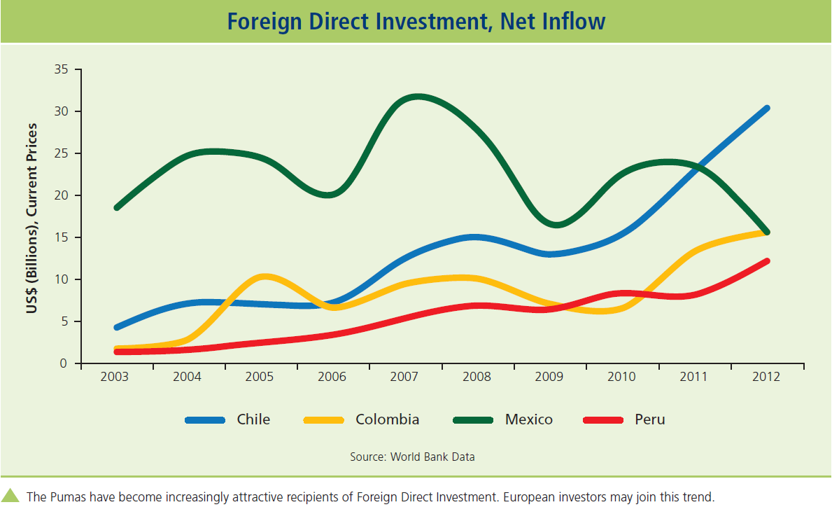 Puma Growth in the 21st Century (Percent Change) The Pacific Pumas have enjoyed consistent growth despite difficult global conditions. The downturn in 2009 reflects the global financial crisis, for which Latin America bore little responsibility. 2010 growth figures suggest a swift rebound. In the face of unfavorable global headwinds, 2014 growth expectations are lower than one might hope, but they are still positive.
