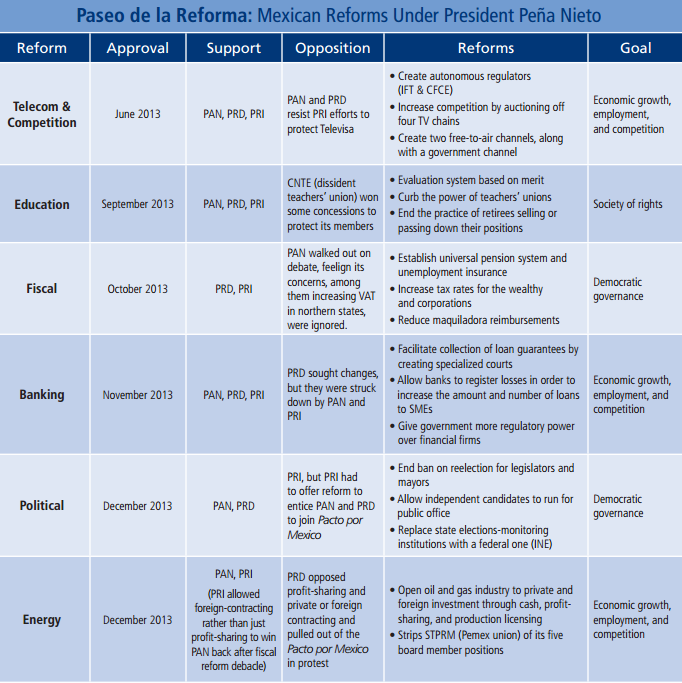 The Mexican reform process reflects a concerted (and belated) effort to create the institutional foundation required to support the weighty potential of the Mexican economy. The press might refer to the lengthy dialogues between parties as “horse trading”, but for Mexico—a one-horse country for much of the last century—it is evidence of a burgeoning democracy.