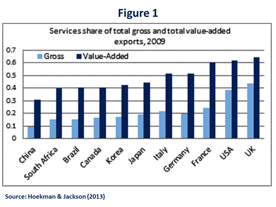 They account for over fifty percent of total exports in countries like the US, UK, France, Germany and Italy and, perhaps surprisingly, almost a third in China. In fact, domestic and imported services appear embedded in the various branches of manufacturing, mining and agricultural sectors. It follows that the quality of services available to a country’s industrial sector, whether domestic or imported,greatly affects the country’s competitiveness.