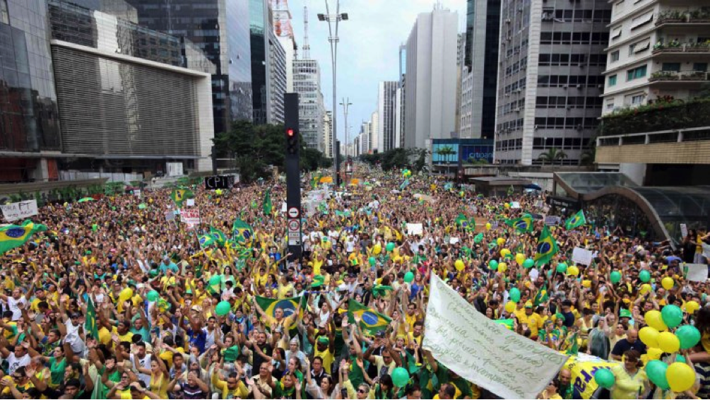 The currency has lost about a third of its value in less then a year, 17 percent in 2015 only. Inflation is reaching eight percent as the government has raised electricity tariffs and fuel prices dramatically. Mass-demonstrations against the government on March 15, brought over 2 million to the streets, and about 1 million in São Paulo alone.
