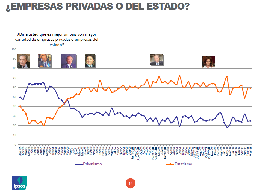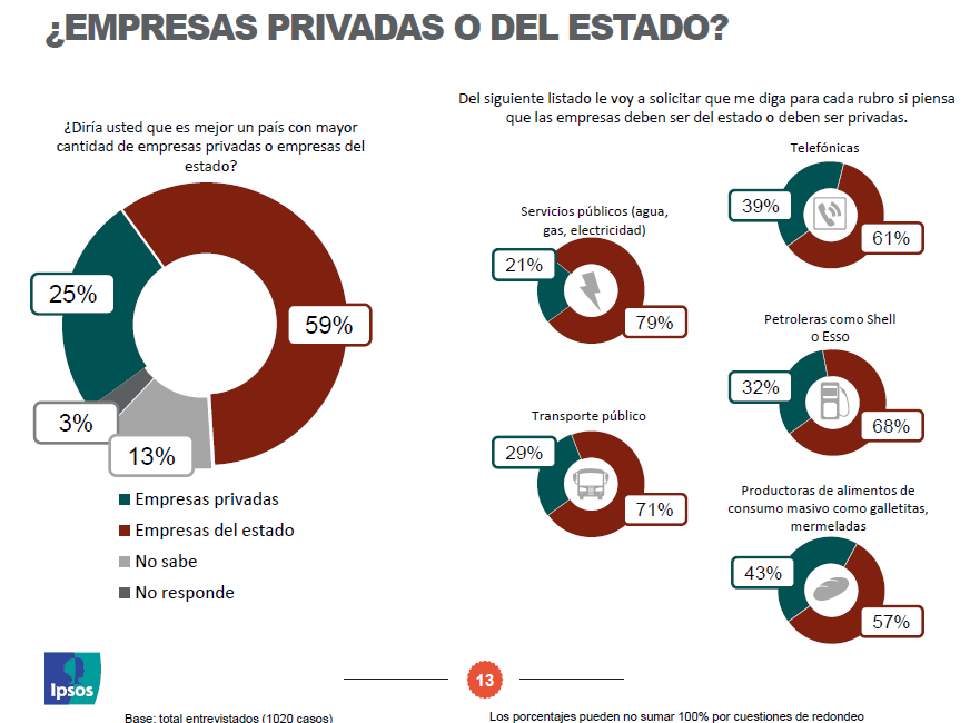 In another question, Argentine poll respondents expressed a clear preference for a heavy state presence in the economy.