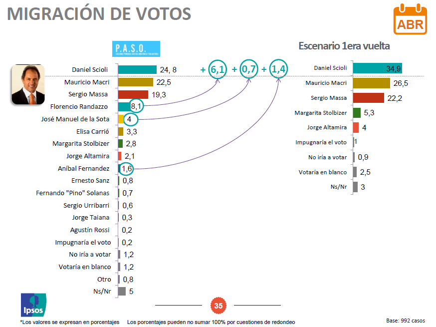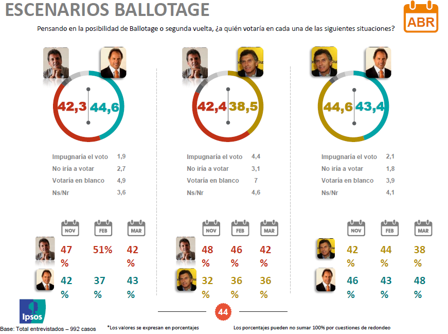 But an Ipsos poll released in May offers more comprehensive evidence that, if held today, the election would tilt in favor of Scioli.