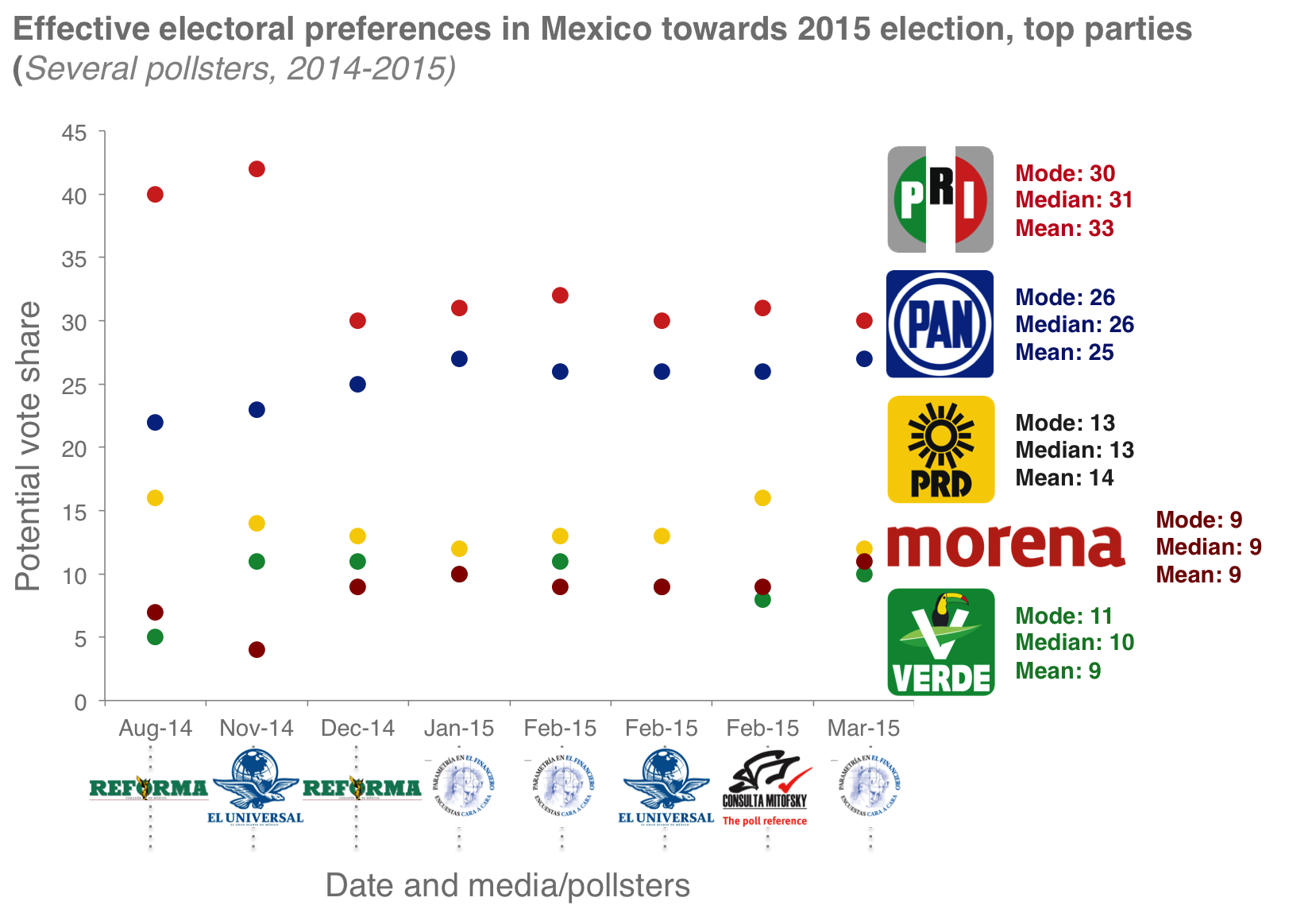 A 2015 study by academics found that nine out of thirteen polling firms consistently overestimated support for Peña Nieto in the run-up to the 2012 presidential vote. None underestimated it. Given the close connections between political polling and media that report their results, and the well-known links between Mexico’s most powerful media companies and the PRI, the regular overestimation of PRI support has been a growing source of suspicion.