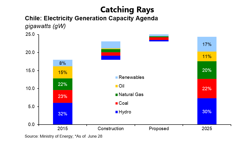 While new innovations, favorable access to financing, and natural bounty will keep Chile on the leading edge of Latin America’s solar wave, stronger leadership is needed to balance larger projects with politically palatable but lower capacity solar, wind, and small hydro installations.