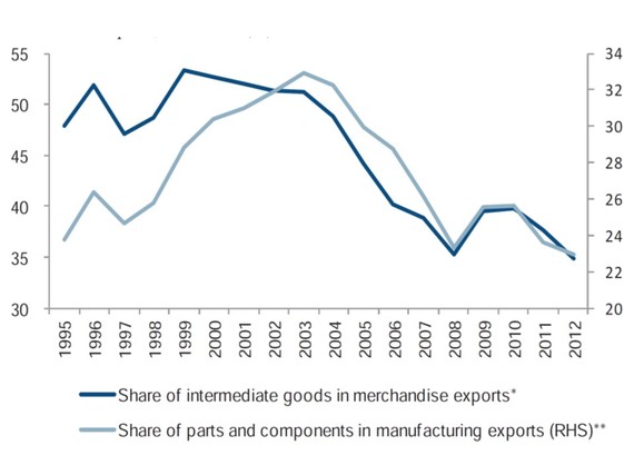 Figure 4 China’s Share of Imports of Parts and Components in Exports of Merchandise